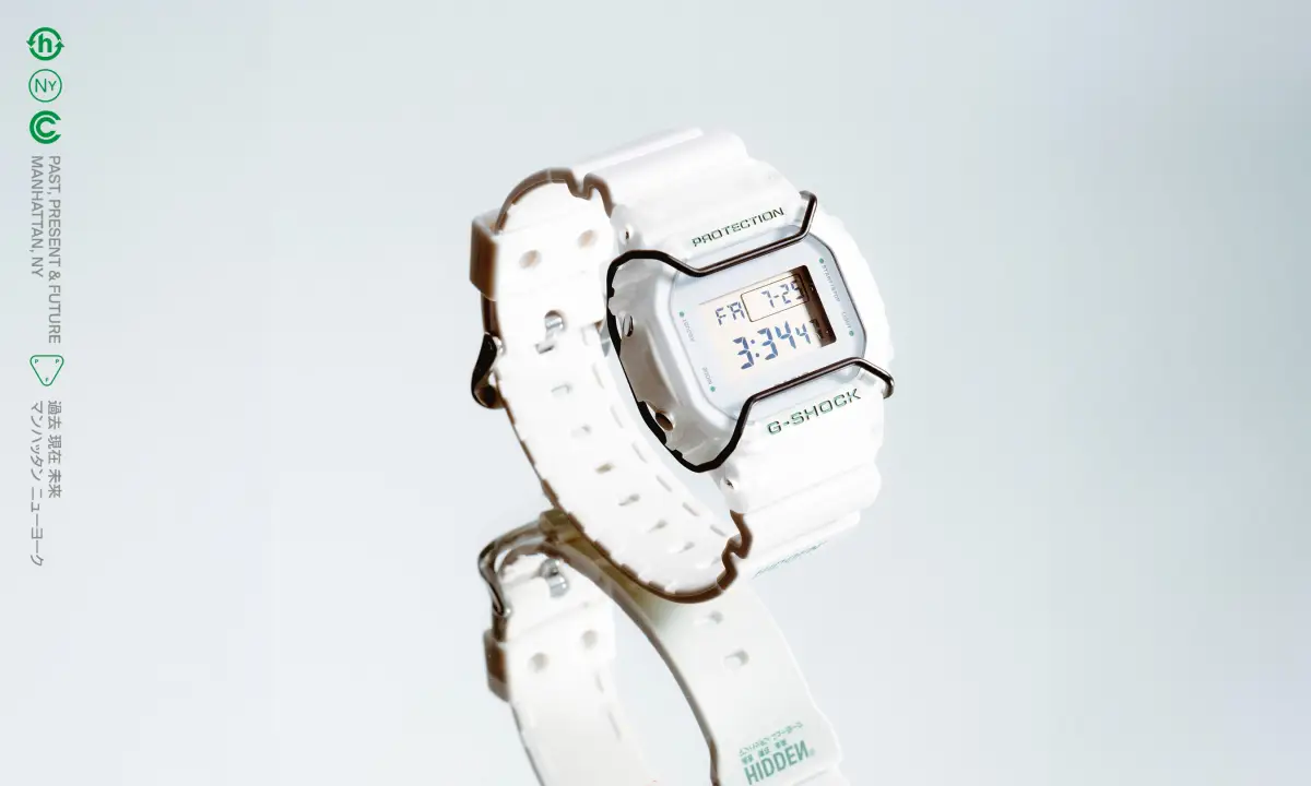 Edisi terbaru ini menata ulang siluet klasik DW5600 melalui lensa khas Hidden NY, memadukan palet hijau-putih khas merek ini dengan ketangguhan G-SHOCK yang tersohor. Sebagai penghormatan terhadap etos Hidden NY, jam tangan ini menggabungkan frasa 'In the Blink of An Eye', sebuah pengingat puitis akan sifat waktu yang cepat berlalu.