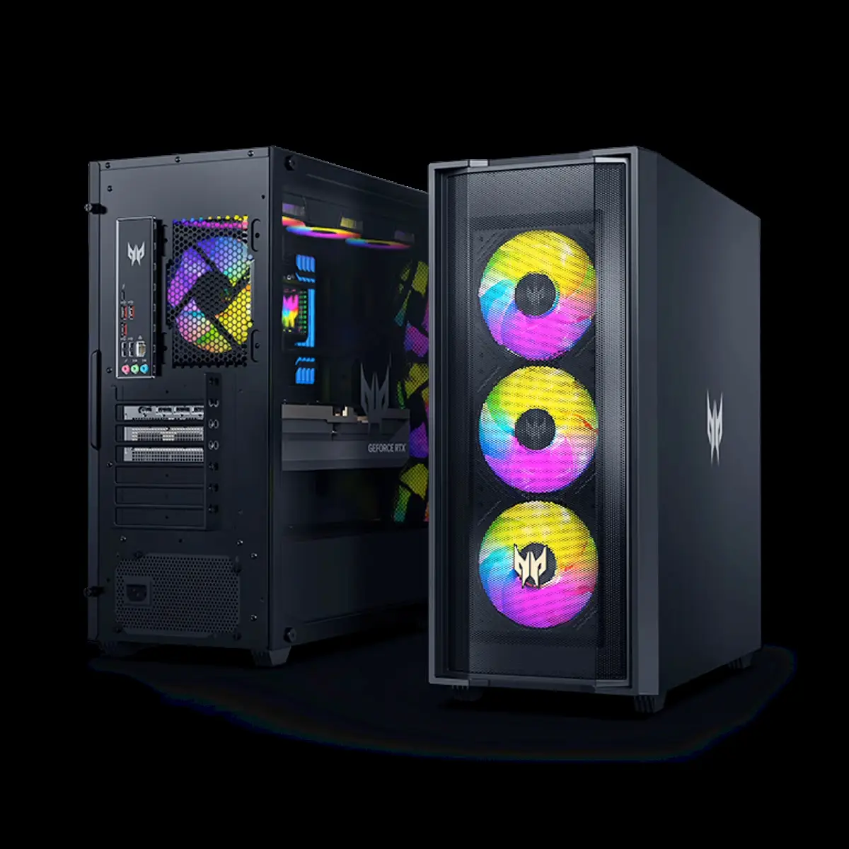 Untuk mempertahankan performa puncak selama sesi permainan yang menantang, Predator Orion 7000 dilengkapi dengan sistem pendingin Predator CycloneX 360 dan pendingin cair CPU. Solusi termal canggih ini memiliki tata letak kipas yang unik dan struktur saluran terbuka.