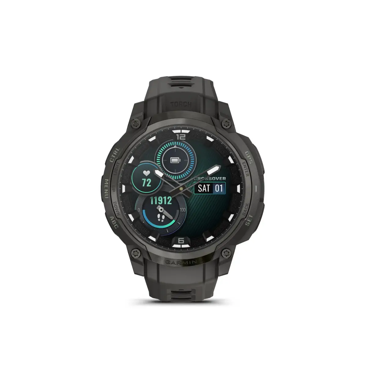 Garmin Instinct Crossover AMOLED memadukan tampilan klasik jam tangan analog dengan layar yang cemerlang dan penuh warna, semuanya dilindungi oleh lensa safir anti gores baru.